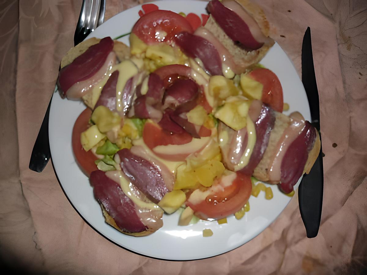 Mots-clés: diabetique, magret de canard fumé, salade, salade complète